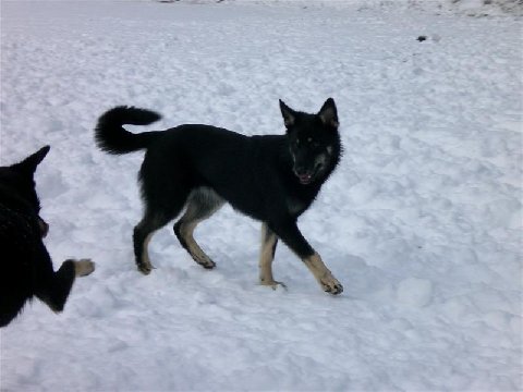 Aamulenkillä nähtiin sattumalta Louhi, mikä oli mukavaa, sillä automatka meni rauhallisemmin hieman riekutetuilla pennuilla =) Perillä pääsimme 14 porokoiran kanssa riehumaan järven jäälle. Paikalla olivat äippäkoirat Kuura ja Piiku, sekä isukit Lauri ynnä Otto. A-pennuista oli paikalla Tuike ja Viima, B-pennuista Jörö, Mosku, Milo, Nasti, Louhi, Ronja sekä Velho. Bonuksena paikalla oli myös Metku-serkku =)